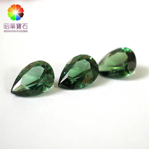 Tourmalineグリーンサファイア梨カットルース宝石Light緑色の宝石合成コランダム宝石